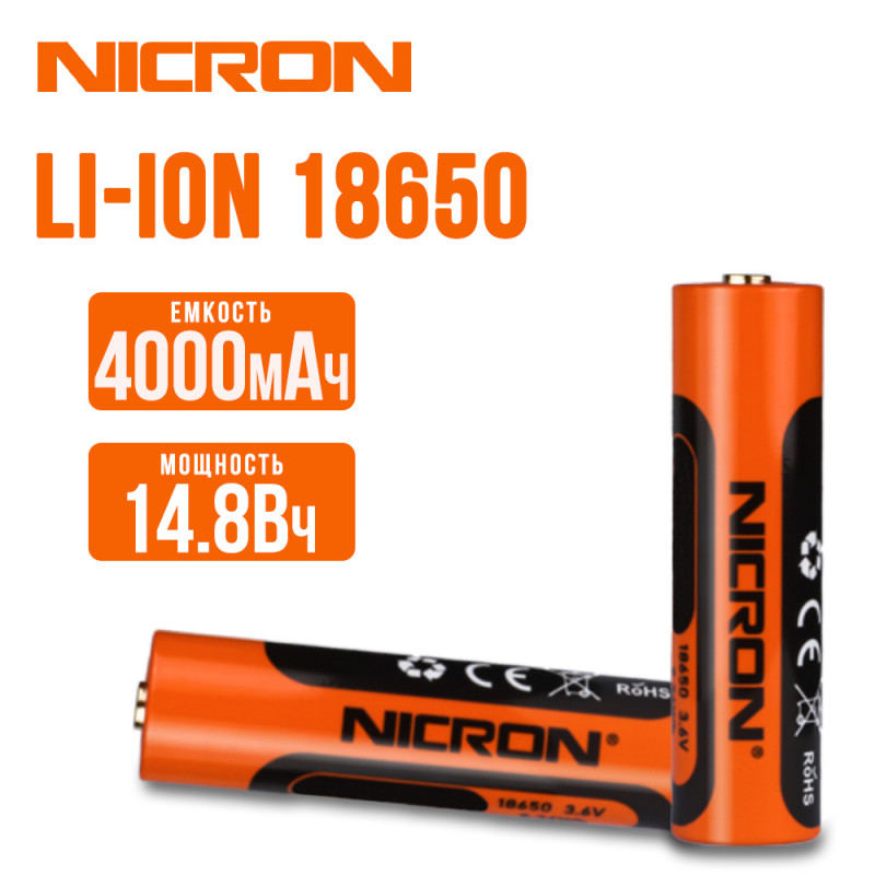 Аккумуляторная батарея 18650 Li-ion 4000 мАч NICRON.