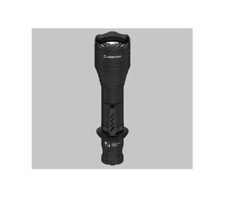 Большое центральное пятно и широкая боковая засветка делают Viking Pro лучшим решением для ближней и средней дистанции с максимальной дальностью до 288 метров. Широкий луч позволяет комфортно выцеливать объекты, находящиеся на небольшом расстоянии в 50-70 метров. Яркость светового потока при этом составляет впечатляющие 2200 люмен. Для зарядки элемента питания не нужно приобретать дополнительное устройство. Аккумулятор заряжается внутри фонаря от любого источника питания с выходом USB.