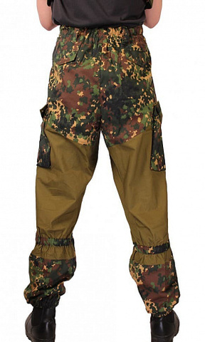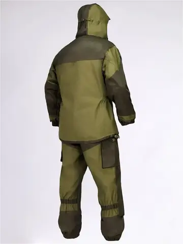 Вобрав в себя все лучшее от костюма — прототипа, данная модификация характеризуется некоторыми улучшенными показателями. Так верхние слои плечевой области и средней части капюшона в дополнение к типовым усилительным накладкам, изготавливаются из плащевой смесовочной ткани, что повышает устойчивость этих зон к промоканию. А отсутствие плечевого шва исключает протекание по шву в этой зоне. Клапаны карманов рукавов и задних прорезных карманов брюк изготавливаются треугольной формы, что значительно уменьшает загибание крайних уголков клапана. Сочетание камуфлированных накладок с основной палаточной тканью хаки цвета, обеспечивает разбиение силуэта человека на удаленных расстояниях.