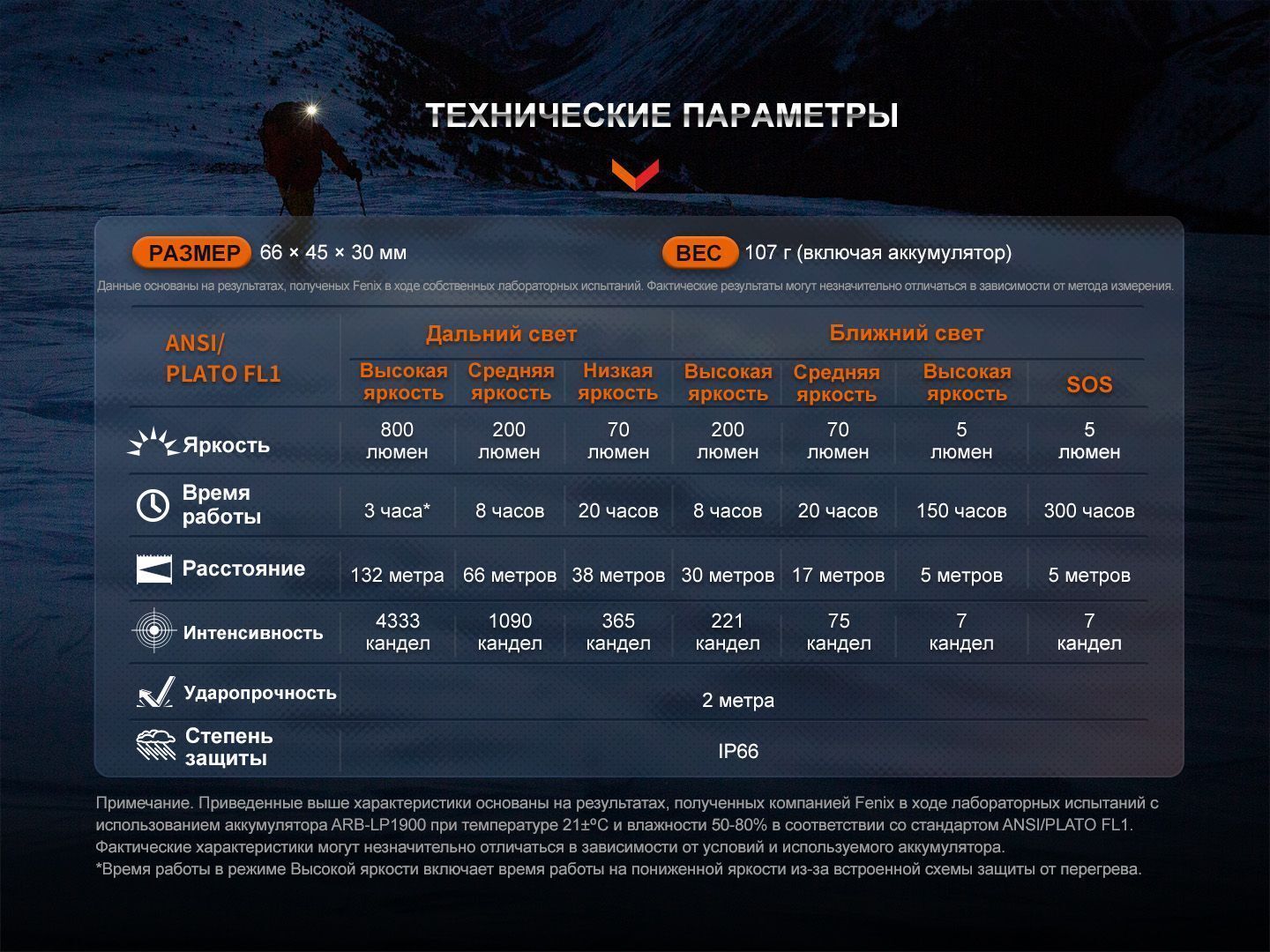 Модель Fenix HL32R-T — это мощный фонарь налобного типа, разработанный для потребностей трейлраннеров и альпинистов. Отличительными характеристиками устройства являются большой выбор режимов как с ближним, так и дальним светом, и минимальный вес конструкции.
