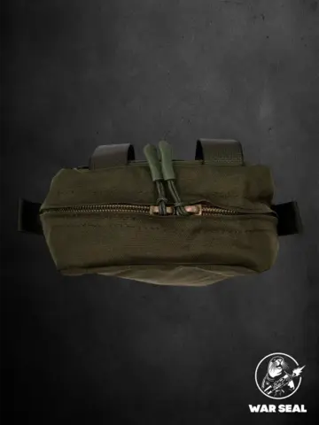 • Подсумок застёгивается на молнию с двумя бегунками. Металлические подвесы заменены на пуллеры, которые не звенят и удобны при открывании в перчатках. Для дополнительной защиты от влаги и мусора, молния закрыта кулисой. Каркасная конструкция подсумка облегчает её открытие и закрытие.