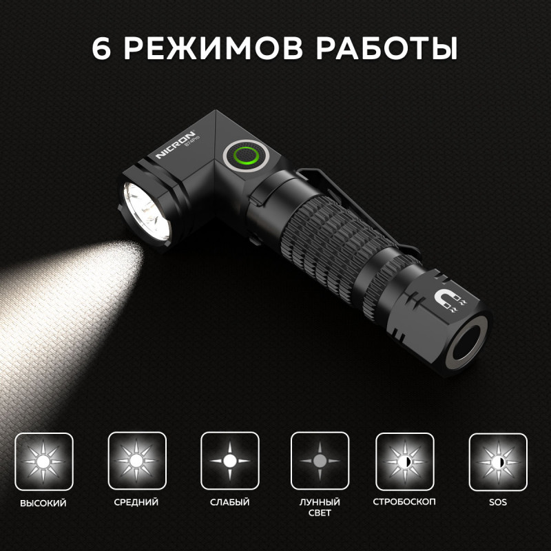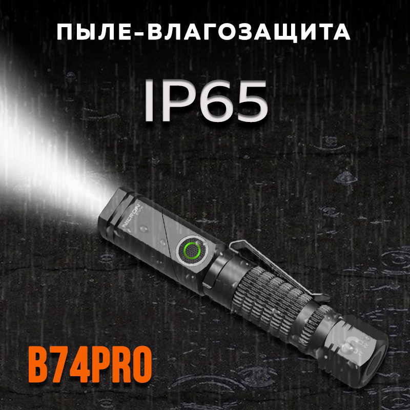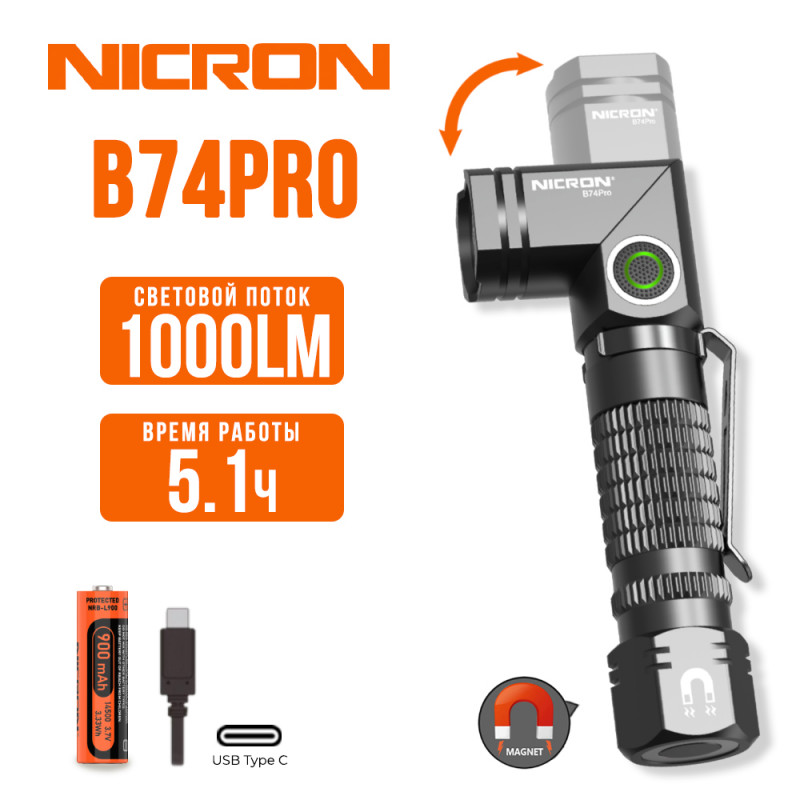 NICRON B74PRO - перезаряжаемый профессиональный поворотный фонарь, супер яркий 1000 lm с дальностью луча 126 метров.