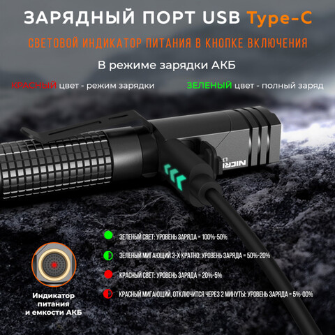 Корпус выполнен из высокопрочного алюминиевого сплава с отделкой анодированием и оснащен интеллектуальной кнопкой, переключать режимы которой легко и просто одной рукой, что обеспечит вам комфортную использование и безопасность применения.