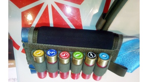 Плотная резинка, шириной 40 мм пришита с определенным шагом для фиксации патронов разного калибра.