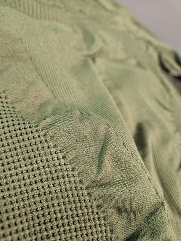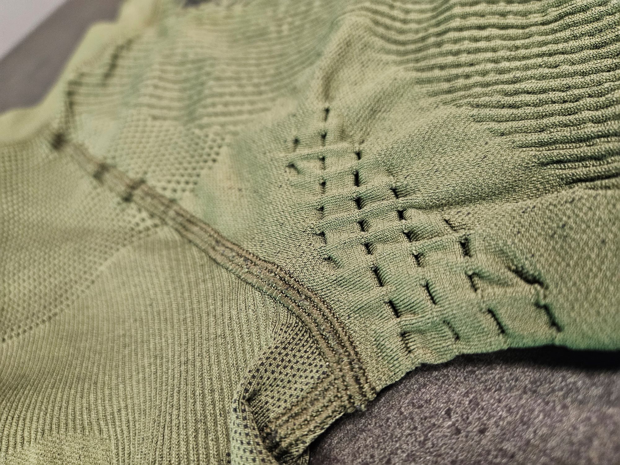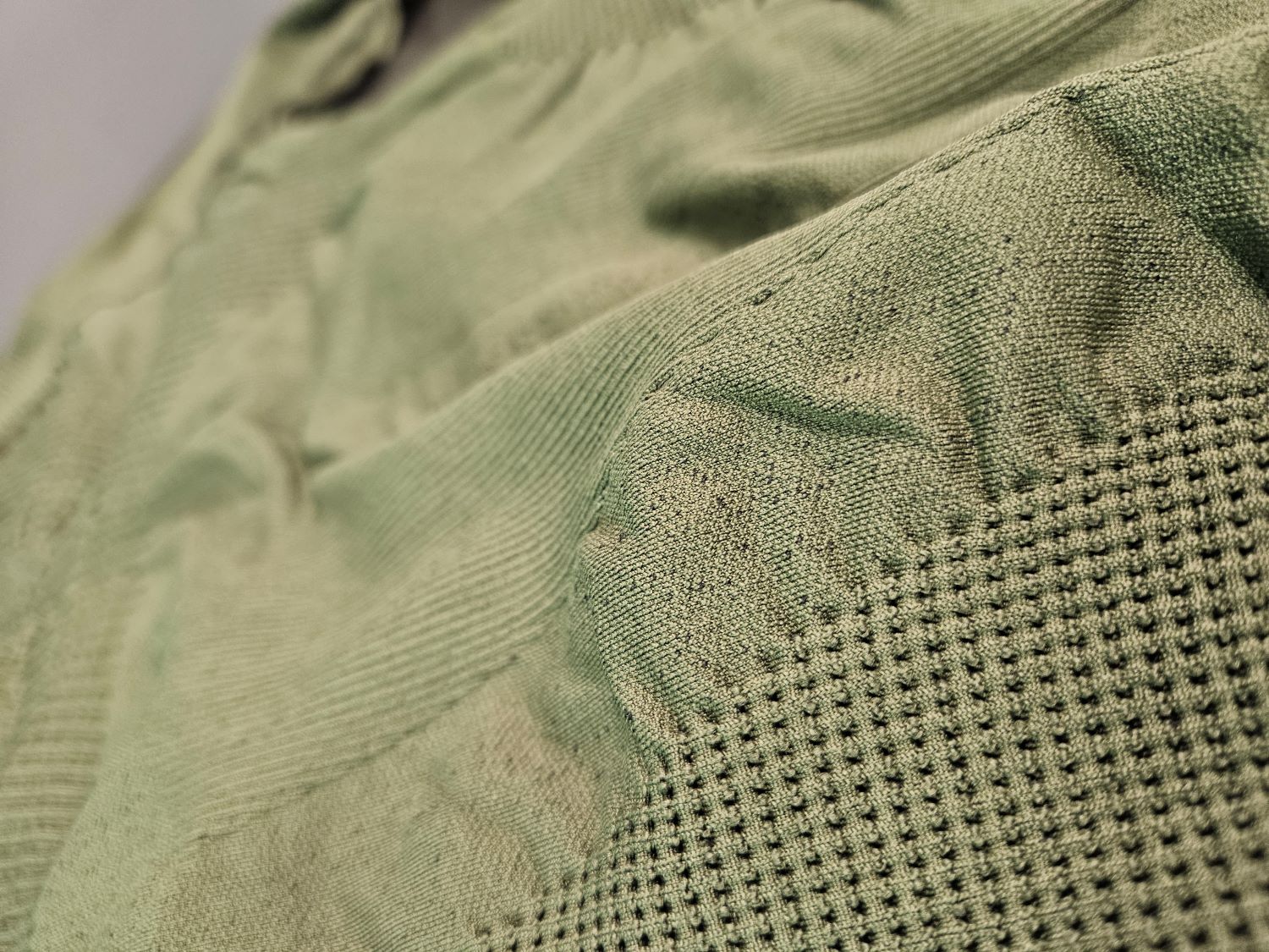 Структура полиэфирных волокон и перфорация позволяют быстро отводить влагу от тела, равномерно распределять по поверхности полотна, обеспечивая быстрое высыхание.
